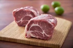 梅花豬肉位於豬的上肩處,因油花貌似梅花點點而得名,是豬部位中肉質較細嫩的部位,吃起來口感不油不柴、瘦中帯油,肥瘦適中。